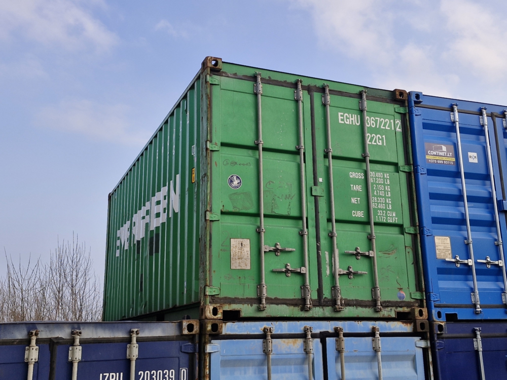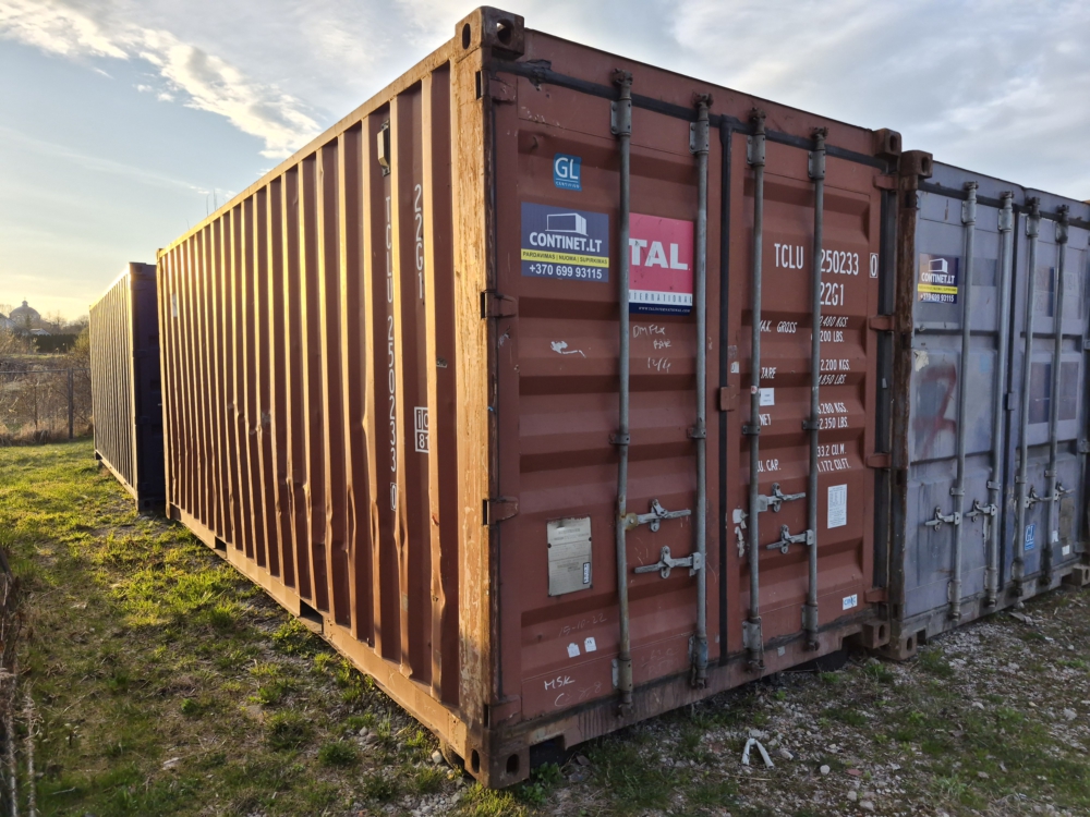 20′ pėdų jūrinis konteineris, naudotas. Ilgis 6 m., plotis 2,44 m, aukštis 2,6 m.