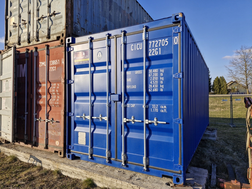 20′ pėdų jūrinis konteineris, naudotas. Ilgis 6 m., plotis 2,44 m, aukštis 2,6 m.