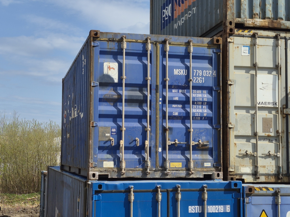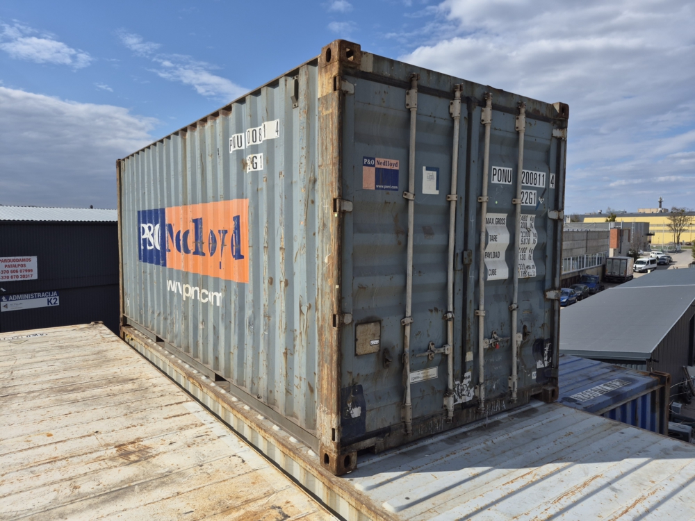 20′ pėdų jūrinis konteineris, naudotas.